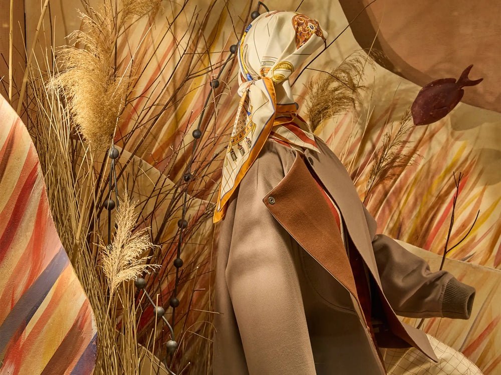 In Chafa Ghaddar’s first collaboration with Hermès, she joins the brand in celebrating 100 years of Women Ready to Wear under the French luxury house’s global theme of the year, “Drawn to Craft”. Consisting of 4 large window displays and a site specific mural for a private event, Ghaddar revisits her signature fresco style to mirror the brand’s values of art, craftsmanship and heritage.